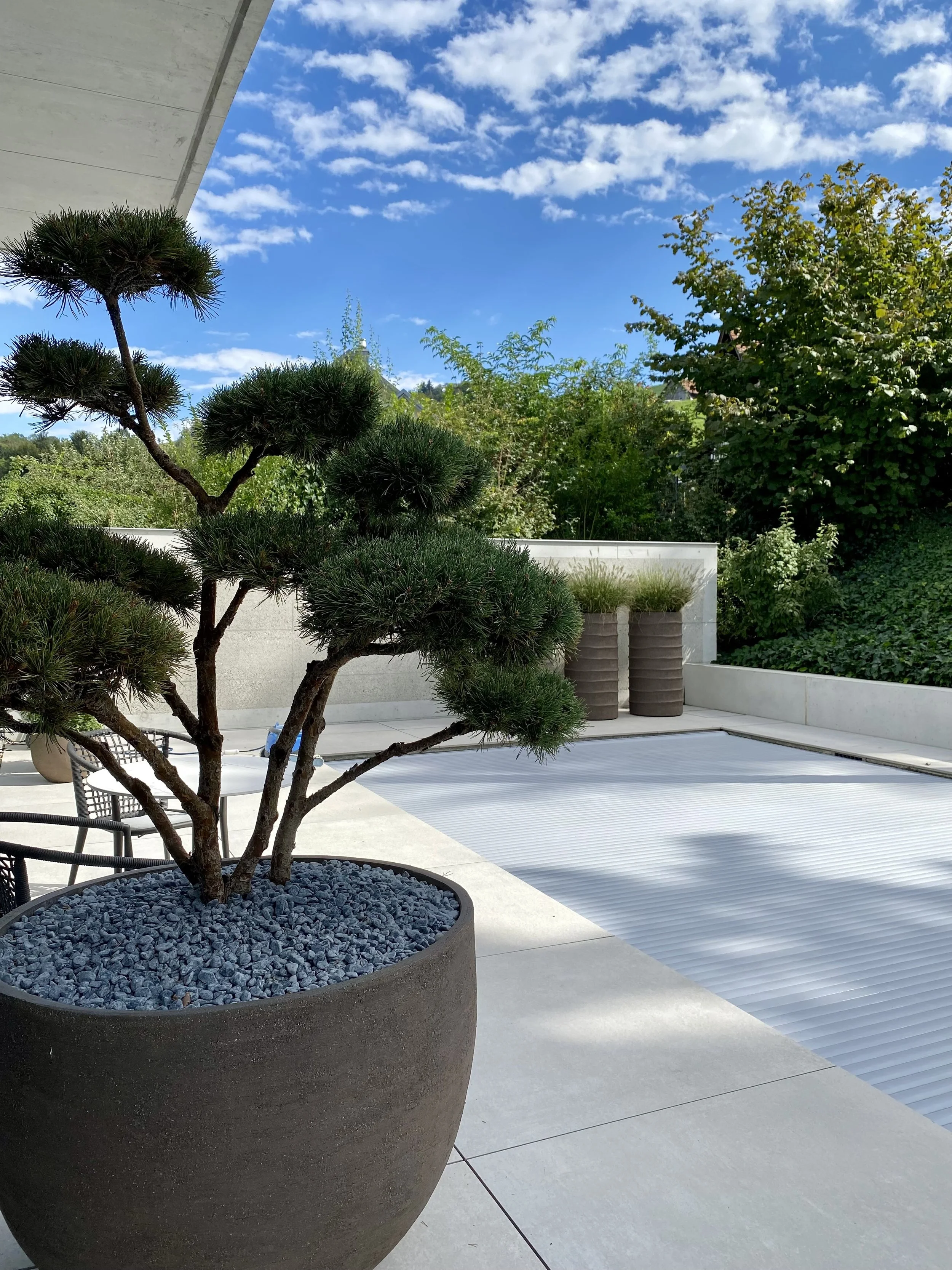 Wir passen die Bepflanzung den jeweiligen Jahreszeiten an, damit die Gefässe immer saisonal gefüllt sind.